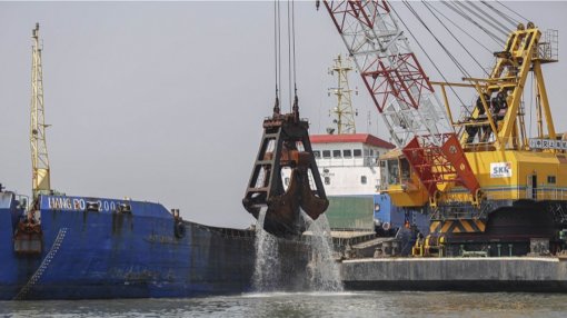 A dragagem dos berços está quase concluída. A batimetria para aferir os resultados deve ocorrer em cerca de dez dias e, com isso, a Xin Hai Beng zarpa para outros portos.