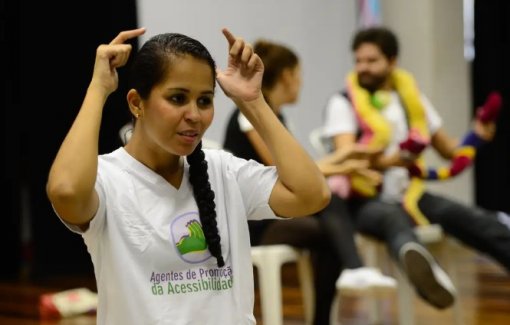 Amarildo João Espindola é surdo, professor universitário e conduz o projeto Libras em Cena, que oferece atividades que incentivam a integração entre surdos e ouvintes, promovendo a inclusão e a capacitação artística por meio de oficinas.