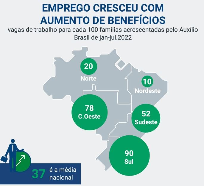 Para cada 100 novas famílias no Auxílio Brasil até julho houve 37 vagas a mais de emprego no país. Figueiredo disse que nunca foi assim durante o Bolsa Família, nem mesmo na grande expansão do programa em 2009. “As reformas microeconômicas deram maior capacidade para as empresas contratarem”, afirmou.