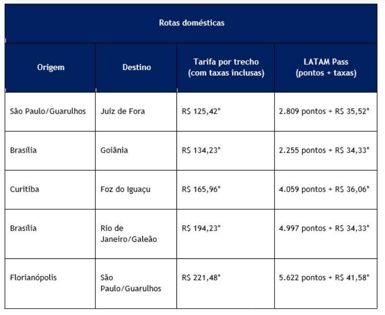 A Latam colocou no ar tarifas especiais para viagens domésticas no Brasil e internacionais. A promoção “Ofertas que passam voando” oferece passagens aéreas até as 23h59 de domingo (12) em latam.com e demais canais de venda. Há passagens domésticas a partir de R$ 125,00 (preço por trecho com taxas inclusas e para viagens a serem realizadas entre julho e agosto de 2022), além de passagens internacionais para Miami com tarifas ida e volta com taxas inclusas, para viagens a serem realizadas entre agosto e outubro de 2022.