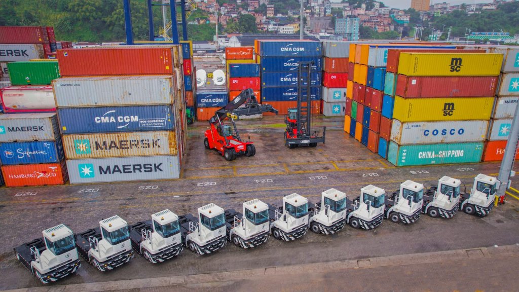 O primeiro terminal do Brasil a inserir equipamentos totalmente elétricos em sua operação, o Tecon Salvador, unidade de negócio da Wilson Sons, investiu em mais 12 tratores de pátio elétricos, além de duas reach stackers e uma side loader, empilhadeiras com tecnologia de ponta, vanguarda no mundo. A aquisição dos veículos, chamados de TTs (terminal tractors), utilizados para o transporte interno entre as embarcações e áreas de armazenagem de container somada às empilhadeiras, demandou aproximadamente R$ 24 milhões de investimento, contribuindo para aumentar a capacidade de atendimento e competitividade do Porto de Salvador, com foco em eficiência e nas melhores práticas para o desenvolvimento sustentável.